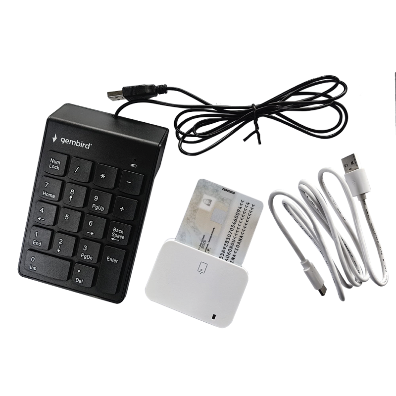 Pachetul contine un cititor de carduri inteligente cu contact - AB Circle CIR135A si o tastatura numerica USB ce permite introducere facila de PIN-uri strict de catre posesor in conformitate cu normele GDPR.