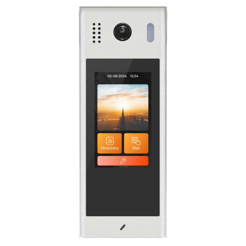 Post de apel video IP din seria DH, cu comunicatie pe 2 fire fara polaritate. Camera cu lentila fisheye, 2MP Starlight, cu unghi de vizualizare de 170°, permite o identificare mai usoara a vizitatorului, iar LED-ul cu senzor automat asigura imagini color chiar si pe timp de noapte. Dispune de ecran TFT de 5”touch si cititor dual de carduri 125kHz si 13.56MHz incorporat. Selectarea locatarilor se face din agenda afisata pe ecranulTFT sau prin introducerea numarului alocat locatarului. Sistemul suporta maxim 64 de monitoare. Montaj aplicat.