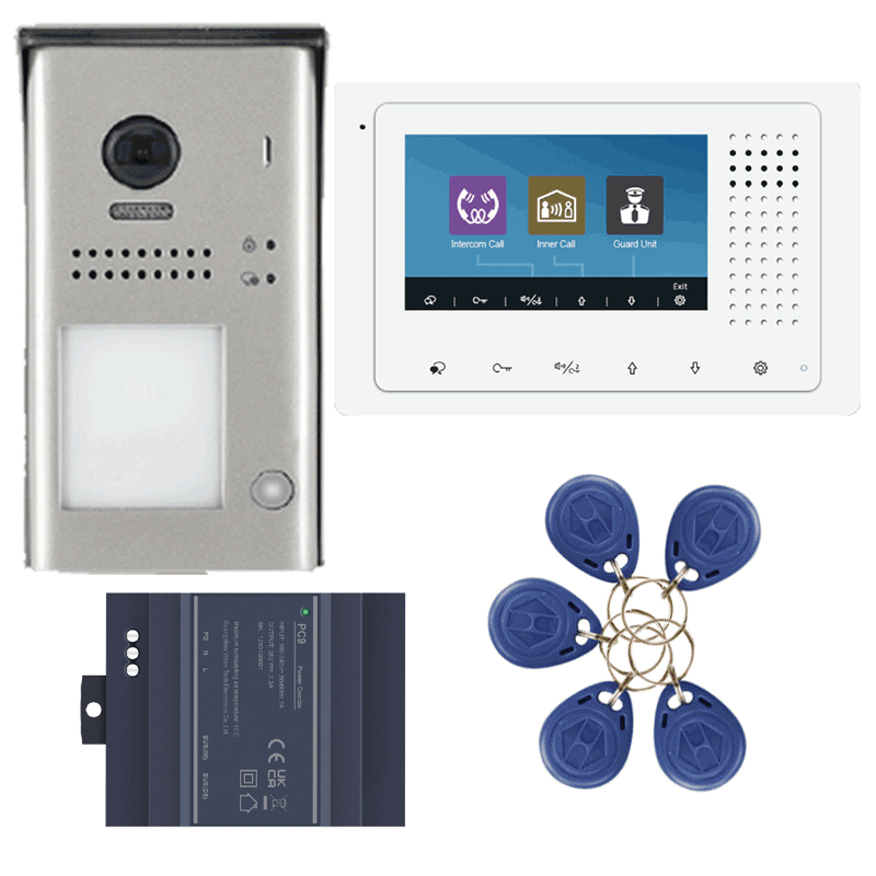 Kit videointerfon digital 2Easy format din post exterior cu un buton de apelare si acces cu cartela (RFID), monitor interior. Videointerfonul 2Easy ofera o solutie usoara si sigura ce permite accesul controlat al persoanelor intr-o anumita zona si in acelasi timp supravegherea spatiului exterior. Videointerfonul ofera securitate pe de o parte (limiteaza accesul persoanelor nedorite), si confort pe de alta parte (deschiderea portii sau a usii pentru vizitatori printr-o simpla apasare pe buton). Control acces pe baza de tag RFID, 125KHz.