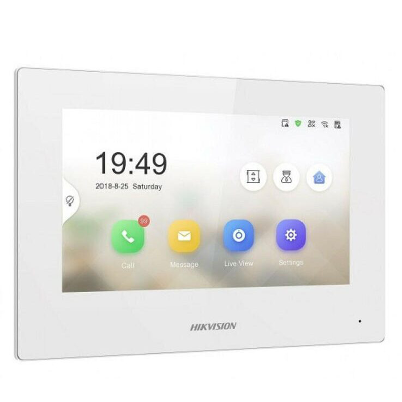 - Post interior VideoInterfon IP: 7" touchscreen color LCD rezolutie 1024x600 pixeli, microfon, difuzor, RJ 45 10M/100M Self-Adaptive Ethernet Interface IEEE802.3af, standard PoE, Wi-Fi 802.11 b/g/n, card slot up to 32GB, Alarm I/O 8/2, RS485, alimentare 12Vcc/1A sau POE IEEE802.3af, dimensiuni 200 mm × 140 mm × 15.1 mm.
