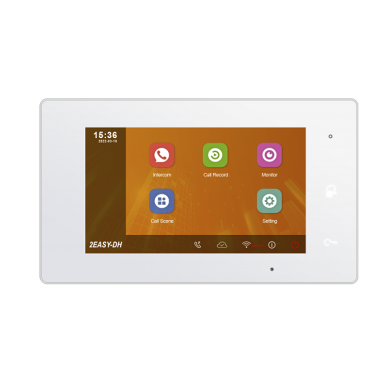 DH470/W este un post de interior video IP cu comunicatie pe 2 fire cu postul de apel si conexiune prin WiFi cu telefonul mobil. Ecranul color de 7” cu touchscreen si meniul intuitiv cu icoane “flat design” asigura o utilizare facila a echipamentului. Echipat cu slot pentru card SD, suporta functia de automemorare sau memorare manuala video sau poze. Functia de inregistrare a apelurilor va permite sa reascultati convorbirile avute, cat si sa vizualizati apelurile nepreluate.